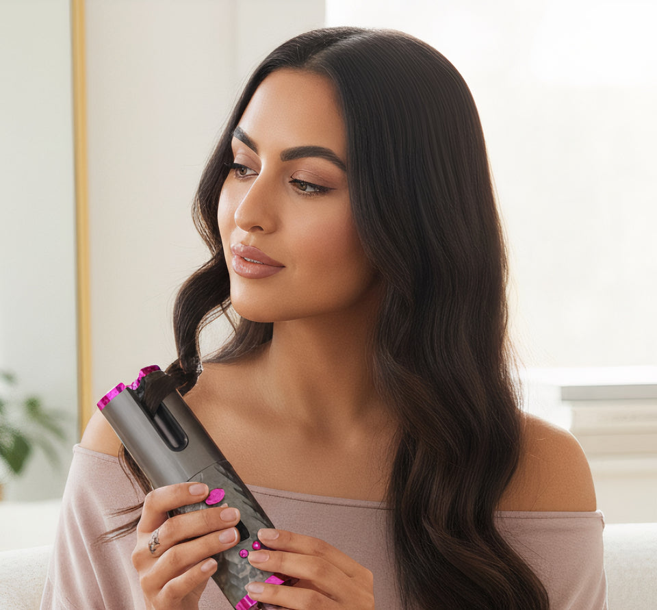 Meet the PixeeGlow CurlMate Air, the cordless automatic curler that wraps, heats, and sets perfect curls in seconds, without skill, effort, or damage.